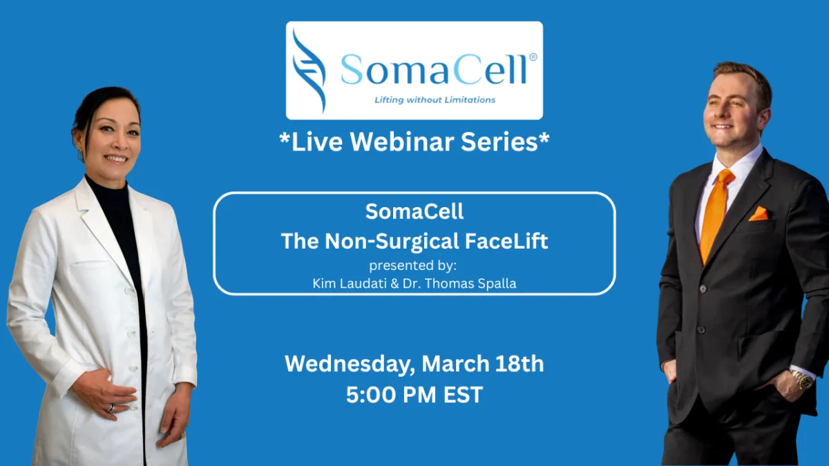 SomaCell® is a next-generation, non-surgical treatment that works naturally with your body by stimulating somatic stem cells, triggering exosome release, and supporting the repair and regeneration of collagen, elastin, and connective tissue – all without heat, pain, downtime, or sun-withdrawal restrictions.