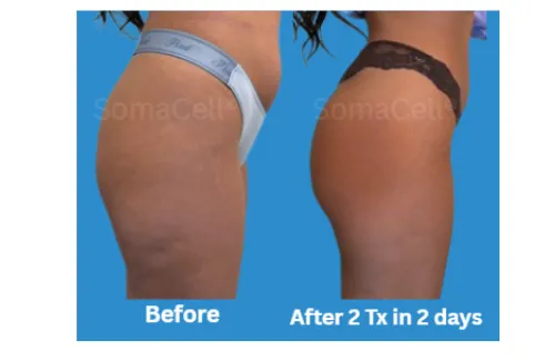 SomaCell® is a next-generation, non-surgical treatment that works naturally with your body by stimulating somatic stem cells, triggering exosome release, and supporting the repair and regeneration of collagen, elastin, and connective tissue – all without heat, pain, downtime, or sun-withdrawal restrictions.